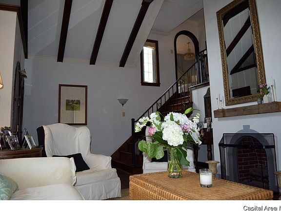 ENCHANTING BRICK TUDOR. CHARMING ORIGINAL ARCHED WOOD DOOR, SOARING BEAMED CATHEDRAL CEILING AT ENTRY, A UNIQUE FIREPLACE, WONDERFUL DISTRESSED HW FLOORS,REPLACEMENT WINDOWS, A SUNKEN DINING ROOM & LOFTED BEDROOMS ADD TO THE DRAMA. GORGEOUS KITCHEN W/ PRETTY CHERRY CABINETS AND STAINLESS APPLIANCES.MAIN FLOOR LAUNDRY/ FULL BATH TASTEFULLY RENOVATED + THE UPSTAIRS BATH SPARKLES & SHINES W/ ALL NEW PRODUCTS! 3 SEASON ROOM LOVE- STEPS TO A LARGE DECK & PROVIDES LOVELY GARDEN & POND VIEWS. FRONT & BACK OF HOME LIVELY LANDSCAPED. IT WILL STEAL YOUR HEART. BRIMING w CHARM *SEE CONFIDENTIAL REMARKS