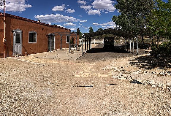 The open-concept living space features a cozy pellet stove, creating a warm and inviting atmosphere. Large windows in your living area and a back door entrance directly to the backyard with scenic views of the Zuni Mountains with abundant natural light and panoramic views of the surrounding landscape.
