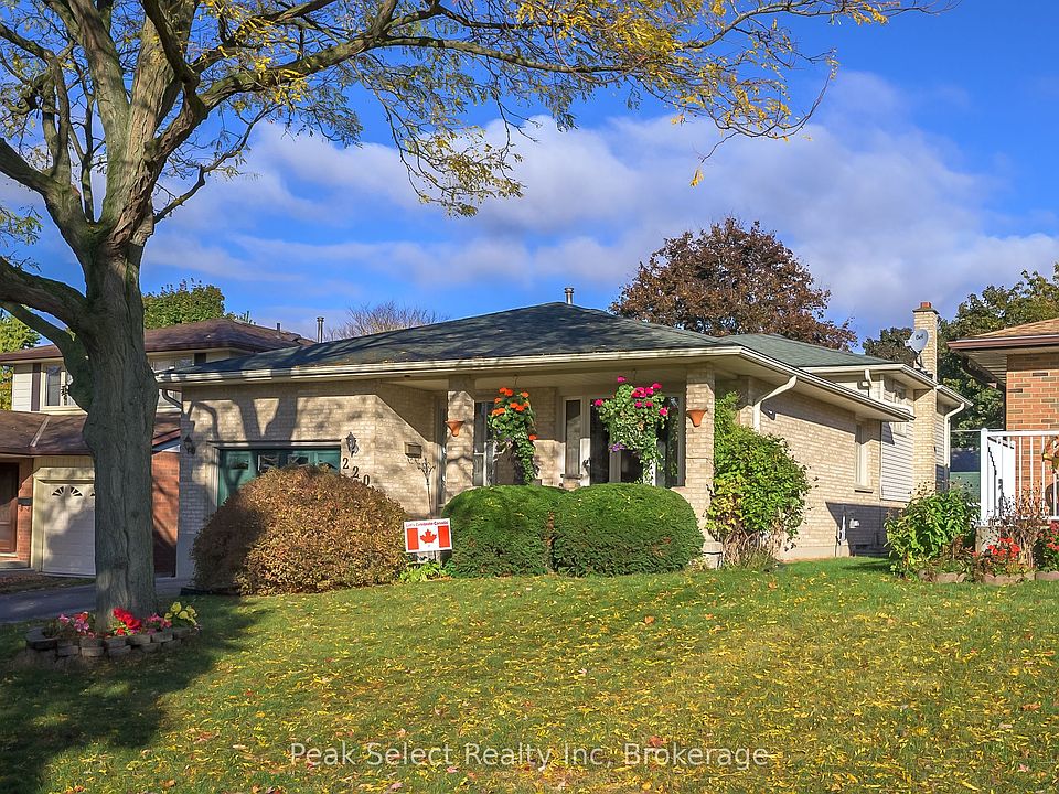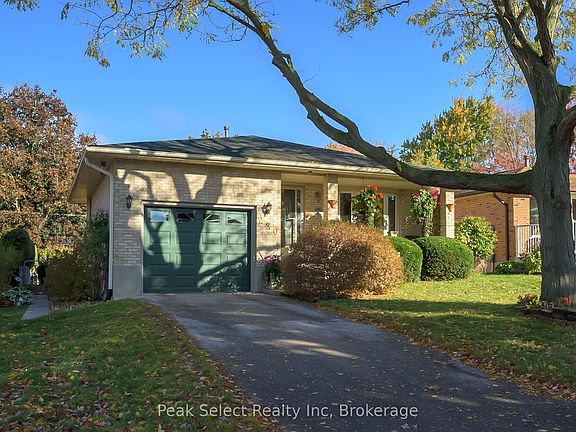 Great 4 Level, brick &sided, backsplit with garage, home -especially first time buyers or young families. HUGE kitchen with open staircase that views into Family room on 3rd level. Lovely covered front porch that enters into home's foyer & inside entry to the garage. The main floor formal dining room could be a office area too; & living room finished in hardwood flrs. Yes, 3rd level is finished with large Family room with extra nook area for computer area, crafts, (perhaps create a bar) AND has 3 pce bathroom (with shower). (Note on wall could be rough-in for fireplace.) A convenient separate side entrance to lower level from a stamped concrete patio with manual shade. On 2nd level is 3 good sized bedrooms, plus 5 piece main bathroom w/wide vanity & 2 sinks. Roomy fenced rear yard for kids & pets to enjoy, plus a cute shed with a porch! .....Now the IMPORTANT DETAILS: This home has been loved and cherished by Sellers for almost 20 yrs. This care started when first moved in: ...2005 TO 2008, many of the WINDOWS replaced, eavestrough, insulated garage door & automatic garage door opener, many light fixtures, washer & dryer, some wiring updates and SURGE PROTECTOR added to breaker panel; ...2008 TO 2015 ish -a new awning plus stamped concrete patio; replaced 2 toilets; SHINGLES , central air and FURNACE; front bow picture window & picturesque front door; a 2nd fridge & freezer; AND, ....LAST TEN years updates: Stainless steel, built in oven, dishwasher and fridge were replaced about 2018/19ish; the shed's shingles, on-going landscaping care of lawns, flowers/plants including hyrdrangeas, hostas, lilac, roses, few trees, etc. (Dates are to best of Seller's memory & notes- no receipts). The Sellers love their decor of soft beige themes, wood trim and doors, and previous owner's flooring combo of ceramic, hardwood, vinyl and berber style carpet. LOCATION! home is on cul-de-sac end of Regal and can walk to shopping, schools, & buses.