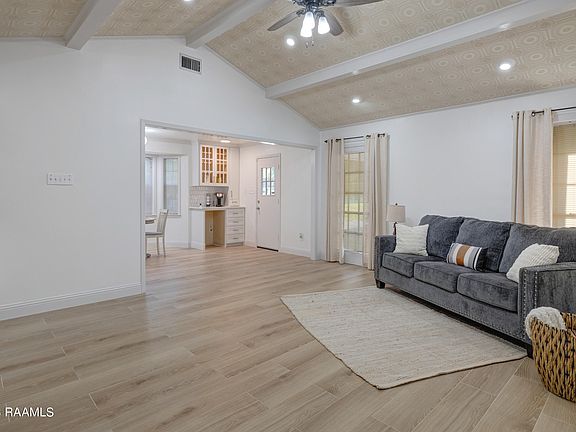 Seller offering $5000 in Buyers' CLOSING COSTS. Well built Mediterranean inspired home on .784 acre lot has been completely updated with new porcelain tile floors throughout, gutted and remodeled kitchen and baths, exterior paint. Kitchen features custom built cabinets with Quartz counters with open concept to eat in kitchen. Huge laundry room with abundance of storage cabinets. Unique vaulted ceilings in the living room with modern custom entertainment center. An extra room to act as fourth bedroom or office sits just off of the foyer. Baths also feature custom built cabinets with quartz countertops and custom tiled showers. All new neutral paint colors with accent walls. Double carport with additional large RV/Boat storage plus an outside room and half bath. Home has never flooded. Roof is 3 years old.