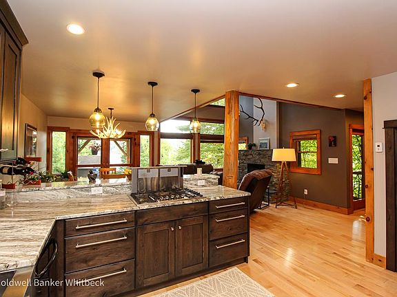 Enjoy the sound of the loons and the pristine view of Lake Flower from this 3 bedroom Adirondack style home nestled within the Village of Saranac Lake. This home features an open floor concept with a large gourmet kitchen with granite counter tops and stainless steel appliances, a cozy living room with a gas fireplace, and a dining area with views of the lake. Hardwood floors throughout the majority of the main floor. The large master suite features a walk-in closet and big master bathroom with a tiled shower. The basement level features the 3rd bedroom and a concrete tiled den perfect for a game room or TV room. The back of the home has a screened in porch and an oversized 2 car garage with additional storage on the second level. Great home for a 2nd home used as a vacation rental with its location within the Adirondacks.