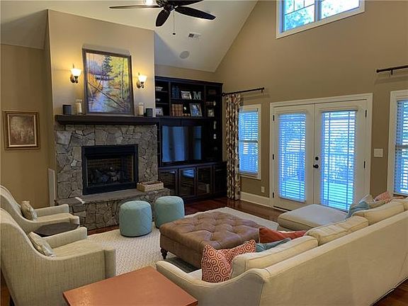 Executive custom-built home w/ style in the Harbor Ridge subdivision. Well-designed floor plan w/ over 4700 sf provides 5 BR, 3 BA, upstairs office/play room, downstairs media/family room w/ full size bar. From the front porch entrance, through the foyer, you'll fall in love w/ this open floor plan. Home features hw flooring, vaulted & tray ceilings, rock fp (gas), built ins, kit w/ custom cabinets boasts granite counters, stainless appliances, oversize bar seating, plus pantry & work closet. Master suite features tray ceiling, separate vanities, walk-in closet, walk-in tile & glass shower, soaking tub, & private water closet. 2nd level provides loft area perfect for craft/play/study room. Additional features include screened porch, oversized garage, dedicated lawnmower garage, nice landscaping, all on 1.43-acre tract. This fully loaded home truly has too many options to list. Harbor Ridge provides boat/trailer parking, a pavilion area w/ fire pit, & a boat dock for short-term access.