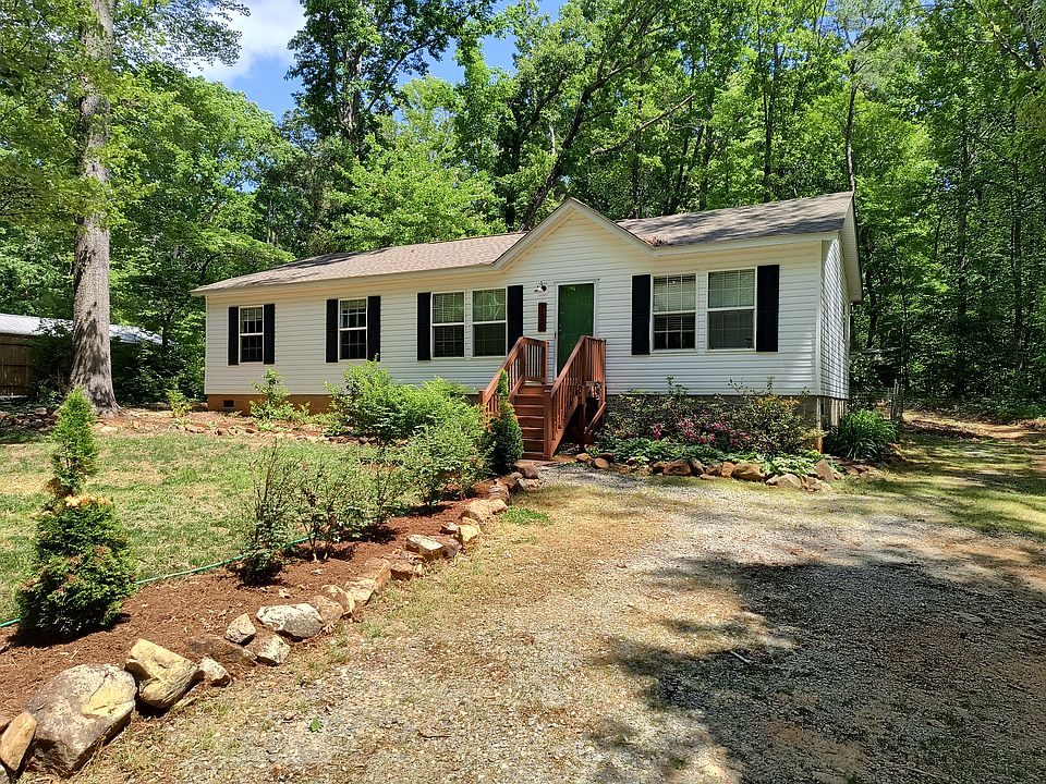 Newly renovated and adorable home available in Pittsboro! If you are looking for a peaceful and quite respite where you can stretch out, while being 5 minutes from downtown Pittsboro and the up-and-coming Chatham Park businesses, this home is a perfect fit. NO HOA, fenced yard ideal for small kids and/or dog. It also has a separate 8 x 12 ft shed for storing bikes, lawn equipment, etc. And if you so desire, you could even have your own adorable flock of chickens right, in your own backyard! It is on a private gravel road and lot is a full acre of land. It has beautiful hardwood oak trees on the property, and the surrounding properties. The home has been updated with new interior paint, new flooring, washer and dryer, new light fixtures throughout, floor and crown molding, remodeled tile bathrooms, gas stove and a new eat-in kitchen nook. Home is a modular home (not a trailer). Solidly built with a crawl space underneath it. It certainly is a must see! Renter pays for all utilities including electricity and cooking propane gas. Home is on a water well and septic field, so no additional water or sewage charges. This is a non-smoking home, and renters will be required to have a $500 non-refundable pet fee. Cars will be required to park in the gravel parking pad to the side of the house, or in the back of the house. Home is not wired for high-speed internet. No housing vouchers accepted.