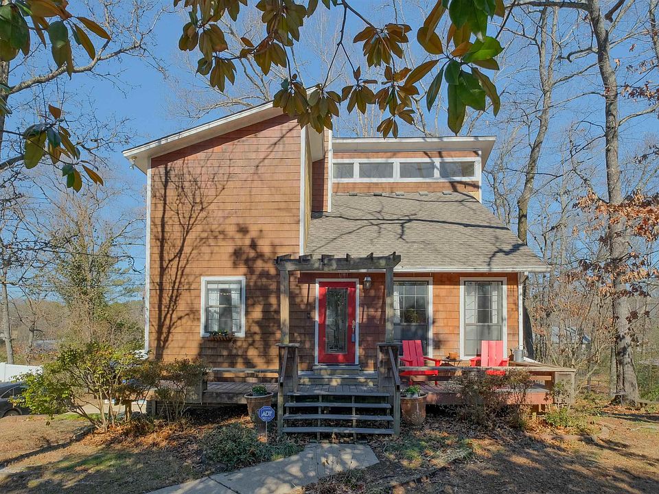 Welcome to this fabulous contemporty style home in Russet Woods. From the minute you arrive, you will be impressed. The front porch is so inviting and stretches across the entire front of the house. The cedar shake siding gives this home an extra boost of charm and curb appeal. You will love the cathederal ceilings and corner rock fireplace in the great room. The floor plan is perfect for entertaining, it has a sound system, an updated kitchen (new refrigerator, new sink and dishwasher, gas stove) and a sunroom that overlooks the backyard. It would also make a great dining room or keeping room. There are 2 bedrooms and a bath on the main, with the master suite upstairs with a large loft. (and exterior porch) There is a 4th bedroom and laundry in the basement, also would make a great home office. This home also features a new roof, new deck, HVAC (2018). This community has new sidewalks and is super walkable and convenient to shopping and restaurants!