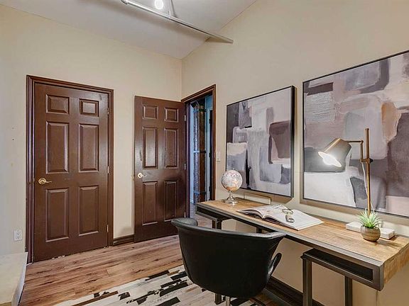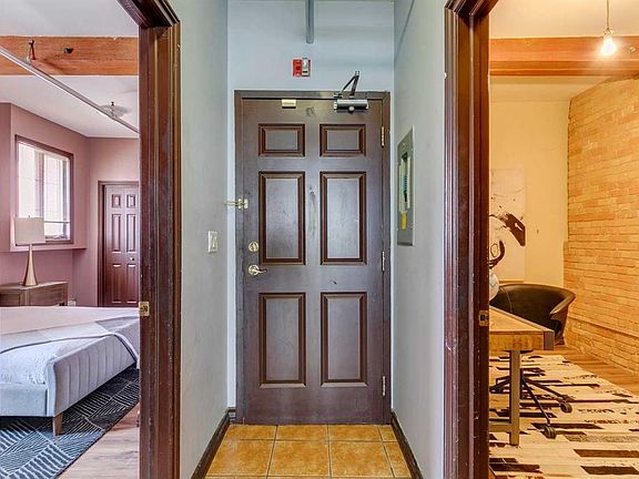 Red brick loftOriginal brick wallsExposed wood beamsSoaring ceilingsWall of windowsOpen-concept layoutPrivate den