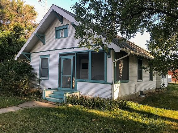 Original woodwork adorns this 1915 craftsman custom home, which consists of 3 bedrooms and 2 bathrooms. It sits on 58'x136' lot in a quiet neighborhood that is within walking distance of the grade school, football field & downtown area. On the main floor there is 980+/-Sqft including two bedrooms & one full bathroom. The living room has a very open living concept for a house of its age. There is a wood burning, brick fireplace that if restored would provide ample heat. Off the open living room is the screened in front porch, access to the hallway that lead to the bedrooms & bathroom, along with the dining room. The dining room is full beautiful original woodwork, from the built in China closet to the trim work & bay window with built in bench. Right off the dinning room is an entryway with laundry hookups. Off the other side sits the kitchen. Attached to the kitchen is a large storage room with separate entrance that use to be a garage. It could be easily restored back into a garage. To access the basement you can either go through the kitchen or through an exterior door at the top of the stairs. The basement consists of the third bedroom with an attached bathroom. For the rest of the 729+/- Sqft there is an open family area, a large storage room, 2 large closets & a utility room which houses the water heater & the boiler that supplies the efficient hot water heat. This home has been well maintained & has unique charm & character. Make this home yours today!