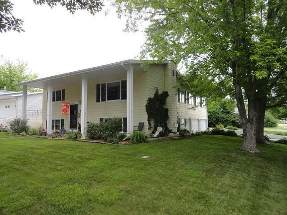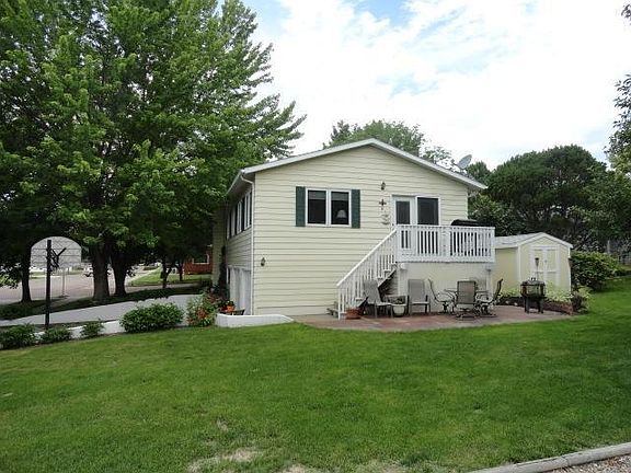 MLS # 14-197 5 Bedroom home with two baths one block from elementary school. Spacious main floor family room with sunny windows. An additional downstairs family room has custom built floor to ceiling entertainment center with gas fireplace. Two car garage, large corner lot, back patio, shade trees, shed, jungle gym, alley access with large additional parking area, hardwood floors, updated mill-work and paneled oak doors, beautiful updated oak windows, multiple storage units to remain, both bathrooms updated with all tile floors and showers, juccizi tub and flat screen TV in main bath, one bedroom has been converted to walk-in closet, underground sprinkler system,basement was completely remodeled in 2010.