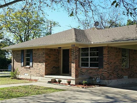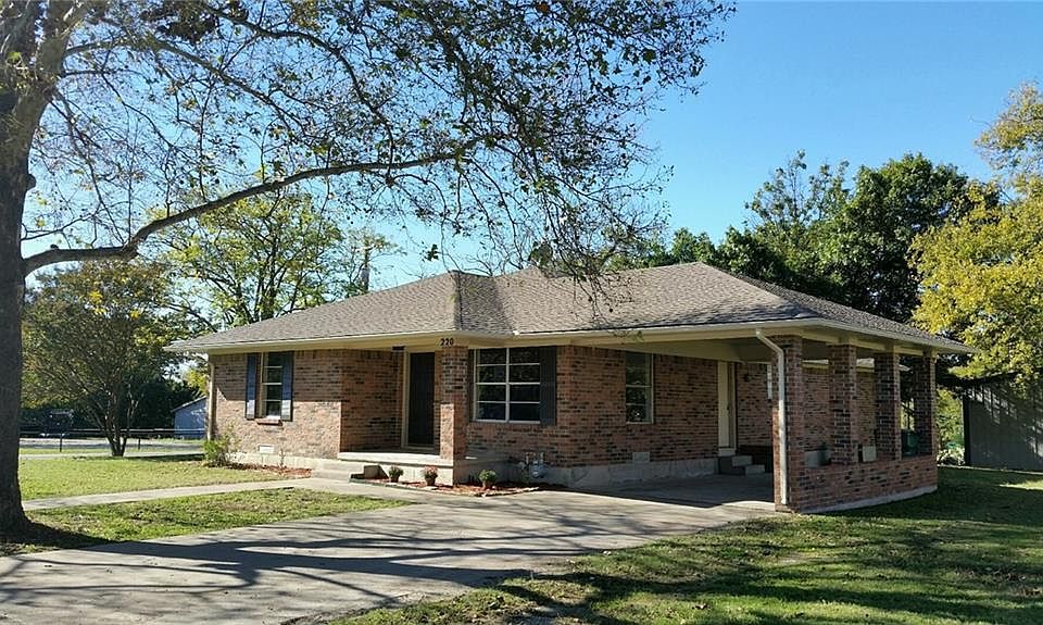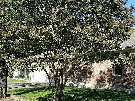 Two bedroom, two bath brick home with carport and garage. Large yard with trees.