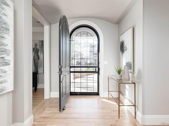 This one of a kind, custom Cape Cod style home in the pristine Hilltop neighborhood, perched on an almost 10,000 sq.ft. lot, raises the bar for casual elegant living! Gleaming hardwoods flow from the classic arched front door and sprawl throughout the entire open floor plan of the main level which notably includes an essential, oversized home office, a guest bedroom, and full bath. The chef's kitchen with an abundance of custom cabinetry, marble countertops, a La Cornue gas stove and a grand statement island, is flagged by the formal living room with fireplace and built-ins and the family room with an additional fireplace and voluminous coved ceilings. Two sets of patio doors wrap around the light-filled main living spaces making for superior indoor-outdoor flow to the private, fully fenced-in backyard, featuring both a covered deck and patio. Upstairs you'll find an exquisite master suite with two walk-in closets, a picturesque soaking tub, two vanities with marble countertops, and stylish built-ins throughout. Two additional bedroom suites with sizable closets and 3/4 baths, and a laundry room with built-ins finishes out the second floor. The 3rd floor is your idyllic, above ground basement with soaring ceilings and a skylight featuring a custom wet bar, half bath and a storage room. This impressive home is accompanied by an oversized two-car garage with a built-in workshop and storage room. Located in one of Denver's most coveted, tree-lined neighborhoods, this home is minutes from Cherry Creek and centrally located 15 minutes between Downtown Denver and the Denver Tech Center.
