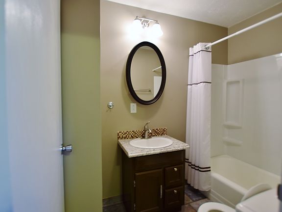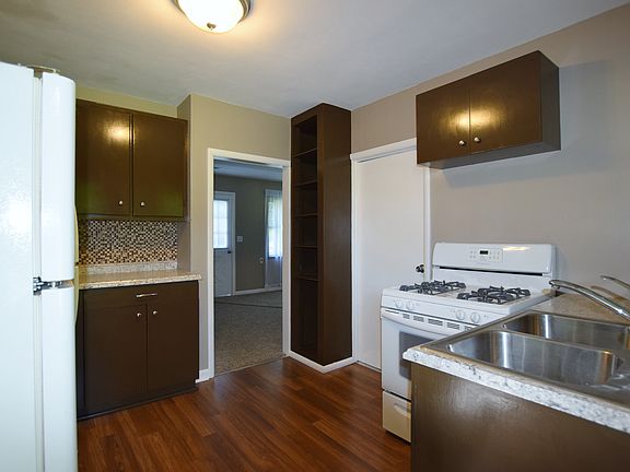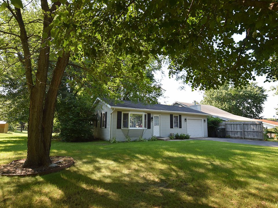 Recent update, nothing left to do but move in and love it! Open sunny kitchen featuring new countertops, glass tile backsplash and new laminate flooring. Updated bath has lots of storage and beautiful slate tile floors. New carpet and paint throughout. Family room in the basement could be used as a second bedroom. Large back yard with mature trees. Attic storage above the attached insulated and heated garage. Broker owned. Sold as-is.