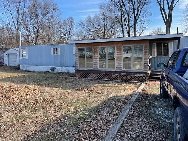 This 2 bedroom mobilehome could be super cute with the right finishes. It has an enclosed porch on the front that could easily be converted to living space. There is a nice little shed for storage.