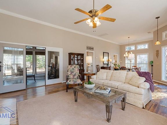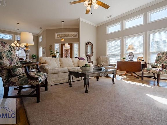 Welcome to this stunning all-brick home, positioned on a half-acre lot adjacent to Cherokee Rose Golf Course. This residence offers a rare combination of elegance, luxury, and convenience. With meticulously designed spaces, exceptional finishes, and incredible views, this home invites you to experience the ultimate in refined living. As you approach the home, you are greeted by a beautifully landscaped yard and elegant portico. Stepping inside, the soaring 11-foot ceilings instantly impress, adding an element of grandeur to the expansive open-concept living area. The rich architectural details throughout this home create a sense of sophistication while providing a functional flow that is perfect for both everyday living and entertaining. The chef-inspired kitchen is a true focal point of the home, featuring Corian countertops that offer both durability and a sleek aesthetic. The custom cabinetry provides ample storage space, and the stunning breakfast room will wow you. The living room, bathed in natural light from large windows, opens up to the elegant dining area, creating a seamless transition between spaces. Beautiful hardwood floors and designer fixtures further enhance the upscale ambiance, while custom touches throughout the home provide both style and functionality. At the heart of the home, the four seasons room is an inviting retreat where you can bask in the warm sun and enjoy great views of the lush golf course landscape. This serene space is perfect for quiet relaxation, morning coffee, or enjoying company. The expansive primary suite is a true sanctuary, featuring high ceilings, large windows, and a spacious layout. The en-suite bathroom is luxurious, with modern fixtures, a clawfoot soaking tub, a walk-in shower, and dual vanities, with a changing room closet. The two additional bedrooms are equally spacious, offering ample closet space and versatility. Another perfectly designed feature of this home is the custom laundry and mudroom, built with style and practicality in mind. With ample counter space, built-in cabinets and sink, this room is a true asset, making laundry days an organized and efficient task. The outdoor space is equally impressive. Step outside to your large backyard, where you'll find an expansive patio and established landscaping. The adjacent golf course provides a peaceful and serene backdrop. Every detail of this remarkable home has been thoughtfully designed to provide comfort, luxury, and lasting value.