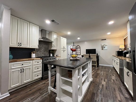 Walnut Ridge Dream Home! Are you in search of a charming and exceptionally lovely home? Look no further, as this one has everything you desire. It boasts beautiful curb appeal as you approach the driveway. Upon entering the front door, you are welcomed by a cozy sitting area currently utilized as an office space. To the right, there is a stunning kitchen equipped with lovely cabinets and butcher block countertops that seamlessly flow throughout. Adjacent to the kitchen is a spacious laundry room with ample concealed storage. Here, you will discover a half bath featuring a distinctive antique metal sink and attractive tongue and groove ceilings, creating a modern rustic charm. Turning left from the entrance leads you to a remarkable space suitable for a play area, formal living space, or lounge. This area features unique ceilings, abundant natural light, and a beautiful rock fireplace, creating a warm and inviting atmosphere with its natural lighting and neutral earth tones. Stepping out the back door, you will be delighted to find a spacious yard with an in-ground pool, transforming this home into a serene oasis of relaxation. Call today before its gone tomorrow!
