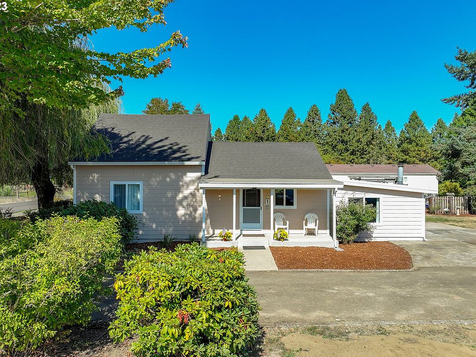 Timeless 1941 farmhouse with a shop and pole-barn on 1.5 acre of level land. Wonderfully updated including new roof, gutters, siding, double-pane windows, electrical panel, Pex plumbing, hot water heater, exterior paint, and LVP flooring! The open-concept interior features a vaulted living room with French doors, renovated kitchen with granite countertops, and three bedrooms. Outdoors, enjoy a landscaped yard with fruit trees, a 24x30 pole barn, and a well-equipped shop. Paved parking, a second driveway, RV parking with power and sewer hookups, new well in 2019, and economical McMinnville Water & Light power (not PGE). Surrounded by beauty with the convenience of town, centrally located to the Oregon Coast and Portland.