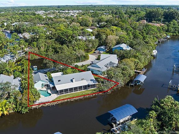 Experience the charm of classic Florida waterfront living with ocean access! This stunning 4-Bedroom, 3.5-Bath pool home with approximately over 150ft of waterfront in desirable Stuart, FL. Provides Deep water for large vessels. Showcasing modern conveniences and refined finishes, the home features tile flooring, an upgraded kitchen with black stainless-steel appliances, granite countertops, and striking pecky cypress walls. The central stone fireplace adds warmth and character, while the 75x14 screened porch invites relaxation. Impact sliders, doors, and skylights provide both security and natural light, complementing the beautifully updated bathrooms. Adding to its charm, the property includes partial ownership of a serene lake with a picturesque waterside gazebo. Enjoy direct ocean access with no fixed bridges all nestled on a quiet street in the heart of Martin County, this is a rare opportunity to embrace the ultimate Florida lifestyle. Don't miss out!