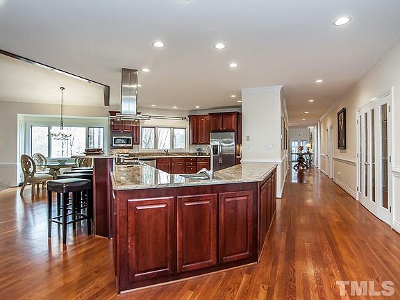 Fabulous Home with private tennis court. Features: granite counters, SS appliances, huge serving bar w/veggis sink, glass folding doors to dining rm & sunroom, ceiling fans, built in wine cooler, shutters on main floors, fireplace in family rm & master & bath, built in niche with shelving, recess lighting, crown molding, chair rail. In-door pool w/ wall mounted lights, skylights, outdoor shower. Truly an amazing property with brick wall in front with manicured landscaping, huge patio & private.