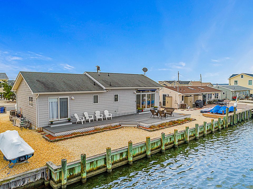 Meticulously maintained furnished bay front ranch in Lavallette. Step into this open concept home w beautiful hardwood floors, crown molding, spacious living room, a chef's kitchen w granite counter tops, custom cabinetry, and stainless appliances. Sliders from the dining room open to the deck where you can relax and enjoy views of the open bay. The spacious Master Suite features a walk in closet and a modern bath w seamless shower. Enjoy bay and sunset views from the deck off the Master Suite. The large guest bedroom is complete w a double closet and a modern bathroom w whirlpool tub. Stroll down to Ocean Beach III to a private bay beach, playground and clubhouse. The 64-foot dock will accommodate all your water toys. Ample off street parking The land is owned.