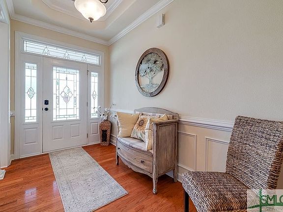 Executive style home is located in St Matthews Place in the highly desired South Effingham. This brick exterior, 4 bedroom, 3 bath home with a foyer that leads to a formal dining room. Great room complete with a gas fireplace, cathedral ceiling, and an in-lay design wood flooring. Upgraded features include hardwood, tile flooring, custom trim, encased windows, crown molding, and specialty ceilings. The kitchen is equipped with granite countertops, solid wood cabinets, and breakfast bar overlooking the breakfast area with custom bay window bench seating. The split floor plan has a private ownerâEUR(tm)s suite and beautiful master bath. Guest rooms on main floor include walk-in closets. Upstairs suite has private bathroom and large walk-in closet. Back yard oasis complete with a screened-in porch, paver patio, fire pit, gazebo and privacy fence. The double car, side-entry garage has space for storage or a work bench. Close to schools, Gulfstream, I-95, Rincon, and Pooler.