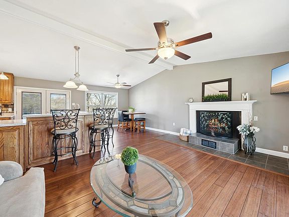 - Breakfast Bar, Breakfast Room, Kitchen Island, Custom Cabinetry, Eat-in Kitchen, Pantry, Solid Surface Countertop(s), Center Hall Floorplan, Open Floorplan, Vaulted Ceiling(s), Walk-In Closet(s), Bar, Workshop/Hobby Area, Lever Faucets, Shower, Entrance Foyer, Dining/Living Room Combo