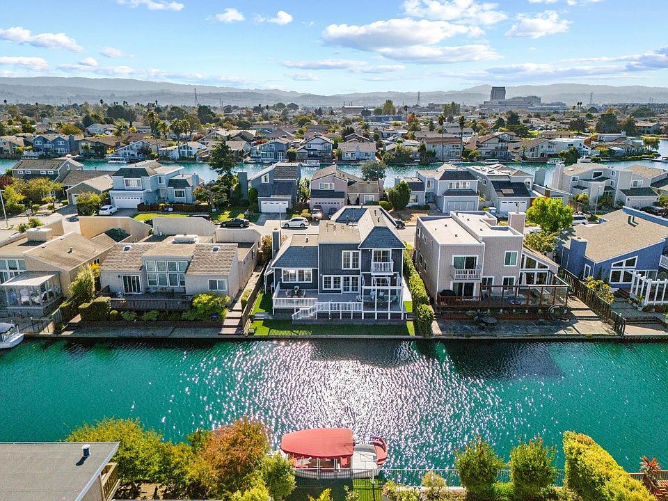 Experience waterfront living on one of Foster Citys exclusive 7 Isles, located in a serene cul-de-sac. This beautifully updated two-story home offers 4 bedrooms, 2.5 baths, and 2,320 square feet of modern luxury. Step through the grand double doors into a light-filled main level featuring soaring ceilings, a spacious living room, and a family room. The contemporary kitchen boasts high-end appliances and a stylish peninsula with seating for casual dining. The formal dining room opens to an expansive deck through French doors, seamlessly blending indoor and outdoor living. Enjoy year-round outdoor relaxation with a windscreen-protected area, perfect for taking in the peaceful water views. Upstairs, the primary suite features a Juliet balcony overlooking the serene waterfront, while the bathrooms have been updated with a sleek, modern design. This home offers an idyllic blend of style, comfort, and breathtaking water views.