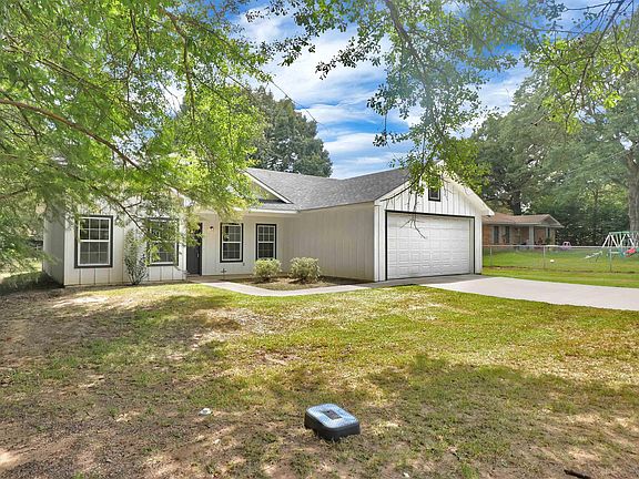 Nearly new 3-bedroom, 2-bath home built in 2022, located in a sought-after subdivision. With 1,416 sq ft, it offers an open floor plan, spacious fenced backyard, and a kitchen with granite counters, island seating, lots of cabinets, including a Lazy Susan, modern appliances, and a mud room. The split primary suite features a tray ceiling, walk-in closet, double vanities, a water closet, and a large shower. Additional highlights include a laundry room with storage, a covered patio, dog run/pen, and an oversized 2-car garage with enough room for your vehicles and your mower/tools. The garage also has a keypad opener. Zoned to Rusk ISD.