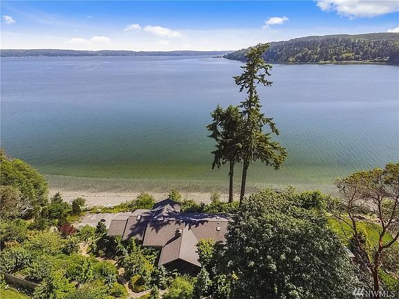 "Price reduction of $100,000.00". Pacific Northwest living at it's finest. 380' of easy access South facing waterfront spanning Squamish Harbor & views of the Olympic Mountains. The flowing gardens are a local delight of colors & contours that offer many respites along the way. A level entry floor plan transitions the home from garden, waterfall and creek to a lifestyle of visual significance. Vaulted ceilings gourmets kitchen, spacious master & ensuite. Views in every room fill the home.