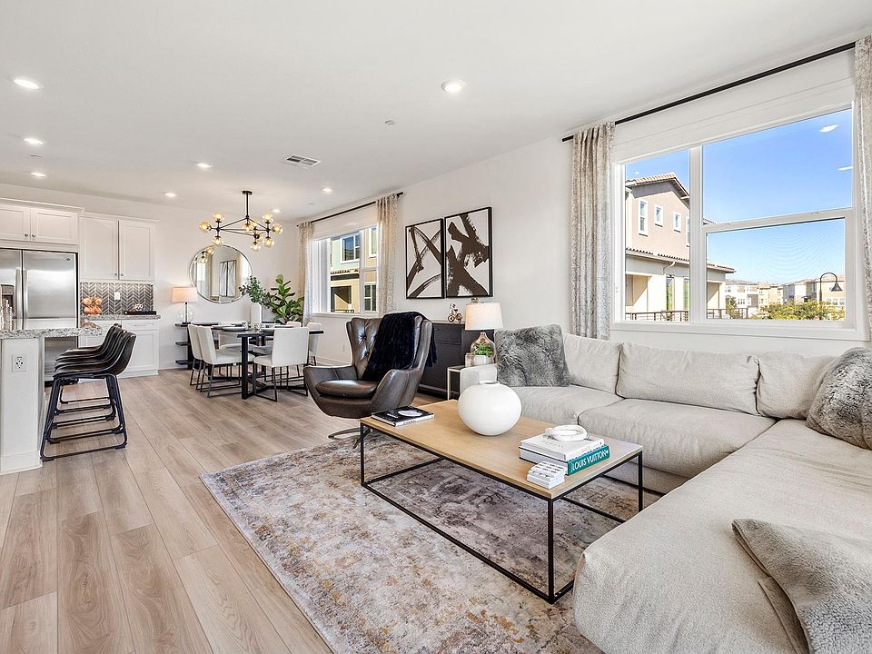 Get ready to fall in love with this gorgeous tri-level home, thoughtfully designed to blend comfort, style, and convenience. With three spacious bedrooms and three and a half bathrooms, there's room for everyone! The versatile layout offers a private first-floor bedroom and bath, ideal for guests or a home office. The heart of the home lies on the second floor, where a bright and airy living room flows into the upgraded kitchen and dining room, perfect for entertaining. Upstairs, you'll find two additional bedrooms, each with its own bathroom, creating the perfect retreat. The interiors feature a blend of Luxury Vinyl Plank (LVP) flooring and plush upgraded carpeting, adding warmth and elegance. Sunlight pours in through expansive windows, filling the living spaces with natural light. The sofa set (couch, coffee table, and rug) are included in the rent, adding a stylish touch to the already inviting living space. The chef's kitchen is a dream, with granite countertops, stainless steel appliances, and stylish finishes throughout. Plus, the direct access two-car garage makes parking and storage a breeze. This home is nestled within a vibrant, master-planned community brimming with exciting amenities. Take a dip in the sparkling pool and spa, enjoy gatherings at the BBQ stations and fireplaces, or host events in the outdoor entertaining spaces. Active living is easy with pickleball courts, scenic greenbelts, and multiple parks and playgrounds just steps away. Whether you want to unwind or stay active, this community has it all! Don't miss out on this incredible opportunity to enjoy a modern lifestyle in a serene neighborhood with amenities for every occasion. Application can be submitted via RentSpree. When submitting a rental application, please include the following: (1) Complete Rentspree Rental Application w/ credit report for each person over the age of 18 (2) Provide last 2 months paycheck stubs or proof of employment (3) Provide last 2 months bank statements (full statements, no summaries please) (4) Provide driver license/ID for each applicant.Minimum 12 month lease. No pets. Renters will be required to provide proof of renter's insurance.