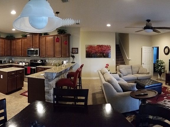 2 year old beautiful and spacious split floor plan 5 bed/4 bath in a safe, quiet and nice subdivision with cul-de-sac. 3 car attached garage and great sized yard with large covered back patio. Granite countertops throughout with LARGE pantry and tons of beautiful cabinets in kitchen. Tile flooring in common areas with carpeted bedrooms and ceiling fans throughout. AMPLE closet space!! Large master bath with his/hers sinks and closets. Large 3-car garage - perfect for all kinds of storage and parking! A short 5 mile commute to the beach! 17 miles from Patrick AFB and only minutes from hospitals! A block away from shops and restaurants! A must see! Will discuss pets on case by case basis! Tenant responsible for utilities and lawn maintenance.