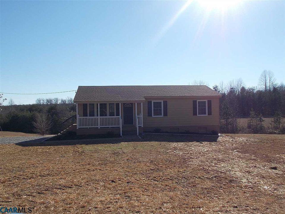 TOTAL Remodeling, finished on this cute home,on 2 + acres. Gleaming real hardwood floors in every room except baths and kitchen. Three Bedrooms, Two Full Baths. Roughed in for Third Bath in Basement. From the roof down to basement this home is updated. Check out all the new updates: Roof, Windows, Interior and Exterior paint, Updated Baths, HVAC system that has vents installed for the unfinished basement. (ALL) new Kitchen with black appliances which include, Refrigerator, Electric Range, Microwave and Dishwasher. New cabinets, counter tops and Breakfast Bar. Updated vinyl rails on covered front porch and wrought iron rails on side porch. 1.5 miles to I-64. 35 Mins to Charlottesville and 30 mins. to Richmond.
