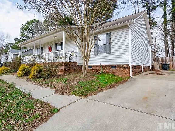 Cute ranch home minutes from White Oak Shopping Center, Hwy 40, Downtown, RDU & more! Beautiful laminate flooring, vaulted ceilings, bright kitchen w/ bay window, gas logs in living room, walk-in closet, dual vanities, fenced back yard, attached storage shed, rocking chair front porch & full of Southern charm! Make this your new view!