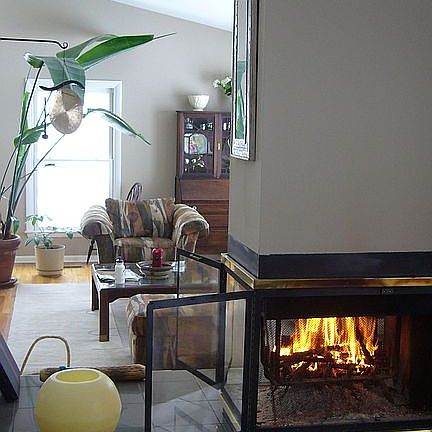 - Fireplace features: wood stove