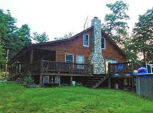 1.5 story cedar siding ranch home. 3 bdrms., 2.5 baths, possible 2 bdrms. on second level, hwd. floors, stone FP, cov. PT porch, 2 PT decks, private wooded location
