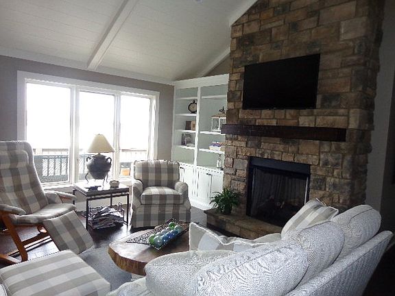 Overlooking beautiful Ky. Lake this waterfront home has the total package... 4 bedrooms, 3 1/2 baths, newly remodeled with an awesome kitchen, dining/living area with vaulted ceiling & a stone fireplace and an additional den in the basement. The back deck wraps around to a screened porch, which is located off of the master bedroom. Tiered steps plus a golf cart path to the water. The 2 slip dock features a boat lift, jet ski lifts & a slide for the kids. Attached two car garage. All of this with stunning sunsets at no extra charge = PRICELESS!