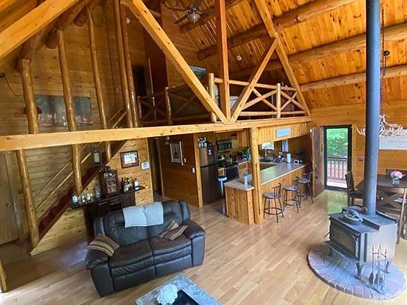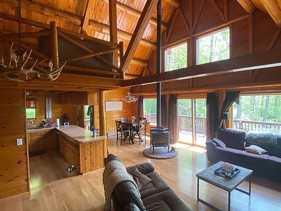 Here is your country retreat on 2.4 acres! Beautiful chalet-style custom log home only 2 minutes to town, Candlewood Lake public launch and Squantz Pond beach. Enjoy quick access to I-84, yet still totally private. This home features an open balcony loft overlooking the great room with 21' ceiling and woodburning stove. All new hardwood floors on main level. High ceilings and plenty of sunlight! 2 bedrooms and updated bath on main level. Master bedroom suite upstairs with full bath and loft. Finished lower level family room with new floor, plus laundry. Enjoy the privacy from your wraparound deck! Oversized 2-car garage. This is a maintenance-free home, don't miss it!