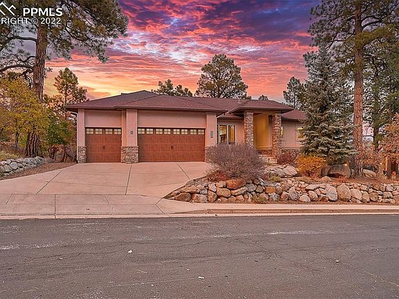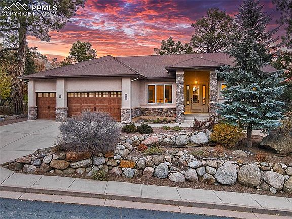 Are you looking for spacious, private and serene? Look no further! This beautiful home nestled in the beautiful Boulders Broadmoor is waiting for you! As you enter the home you are greeted with high ceilings, an open flow that incorporates the kitchen and dining area as well as the living room and rounded walls that give this gorgeous home even more character! You have two fireplaces on the main level to keep you cozy in the winter and an extra space that could function as a formal dining room, office, or sitting room. Main level master with adjoining five piece bath and two spacious walk in closets. You will love the covered deck that allows for plenty of space to enjoy the peaceful surroundings and is accessed from either the dining room, living room or owners suite. The amazing features continue downstairs to include a wet bar, a sauna and a workshop/storage area! Three additional spacious bedrooms with one that has an adjoining bathroom and walk in closet! Another fireplace also in the basement and walk out to the lower covered patio. Location Location Location - minutes away from Cheyenne Mountain State Park, The Broadmoor Hotel, Downtown Colorado Springs, and easy commute to military installations, shopping, restaurants, schools, hiking and biking trails and so much more! And if that isn't enough you have stunning views of Cheyenne Mountain and occasionally the neighborhood turkeys and deer will make a visit! Schedule your showing today!