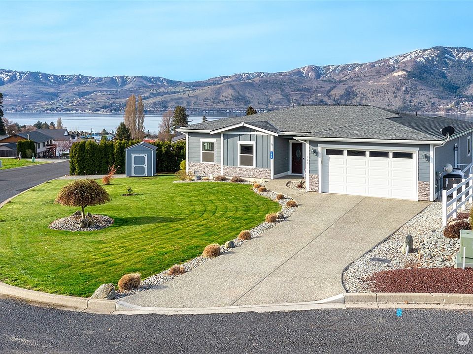 Better-than-new rambler built in 2018 with views of Lake Chelan, orchards, and vineyards in all directions! Enjoy coffee in the morning off the east deck and drinks in the evening off the west deck. Pride of ownership radiates throughout. Immaculately maintained granite countertops with stainless appliances and upgraded Coretec vinyl flooring. Ample storage with custom cabinetry in dining, kitchen, living, and bath rooms. Easy-care landscaping with irrigation water and tools shed. Shop area off of two-car garage. Located in the highly regarded and well-maintained Summerset neighborhood in Manson. Preview of home available via virtual Matterport tour. Don’t miss this one-level, easy-living, view-rich jewel of a home!