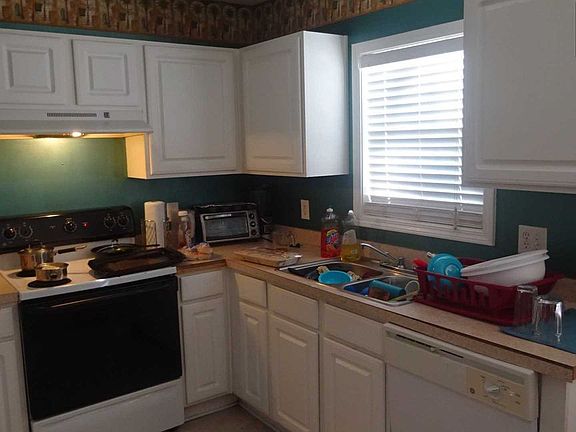 - Kitchen: Cabinets-Wood-White, Counter Tops-Formica, Eat In, Pantry, Vinyl Floor