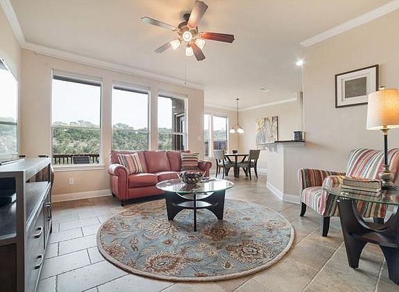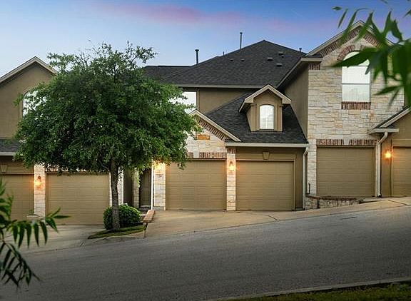 Luxury town home in Gated community that backs to Preserve. Live the lock and leave lifestyle in the beautiful resort area of Lakeway. Located just 30 min from downtown Austin this condo sits high above the nature preserve. Inside you'll find Crown Molding/Tile on main level. Sparkling Chandelier/Accent Molding in dining. Granite/SS in kitchen. Master w/Crown Molding & private balcony. Master bath has Chandelier /Granite counters/accents surrounding garden tub/shower. Separate WalkOut basement with full bath/closet/storage room is perfect for 4th bed/media/office etc. with patio grassy area. HOA maintains Yards/exteriors/trash/water/Clubhouse/Pool/Tennis/Fitness/Playground WOW