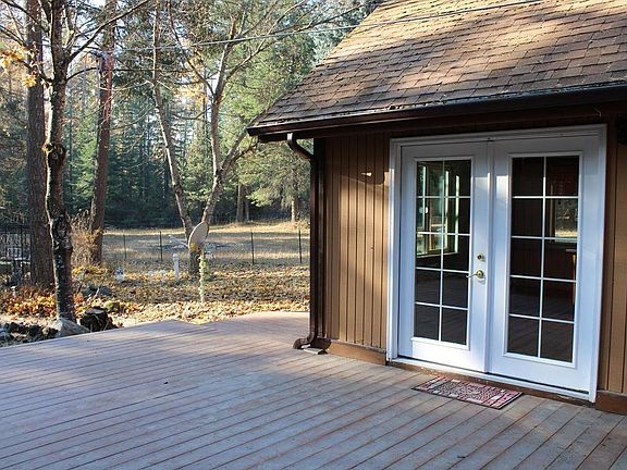 Serenity in Sagle! 3 bed - 2 bath, single level home on 5 acres with mature timber including Tamarack, White Fir and Cedar. Recently updated back deck overlooks man made waterfall and pond. There is a spacious fenced in garden area with a chicken coop. Warm up by the wood stove in the cozy living room or relax in your jetted tub. Open kitchen is great for entertaining with french doors leading out onto the back deck. Includes a 2 story shop with concrete floor and 2 car garage. A little TLC would make this home an amazing retreat. Quiet country feel yet close to town. Priced to sell fast!