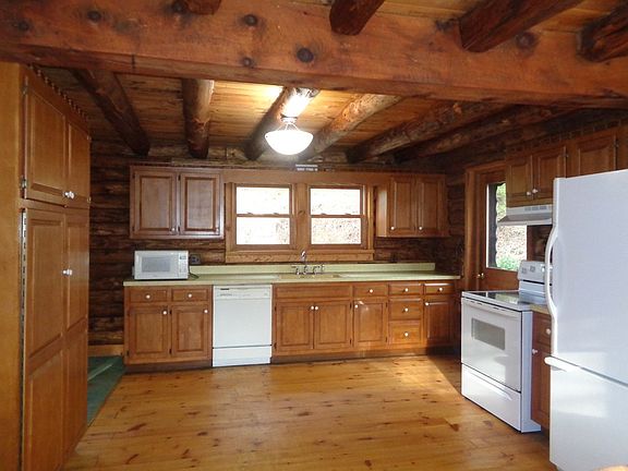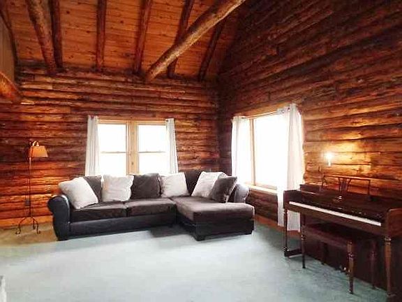 One of a kind Log home on 1.1 private acres with Tea Creek meandering through. Features include: cathedral ceiling with 2 story stone fireplace in living room. Cheerful eat-in kitchen with all appliances included, and finished rec room/2nd bedroom in lower level. You'll love the rustic feeling and enjoy the charming setting of this unique home.