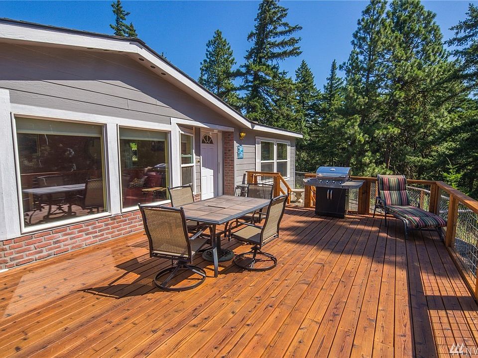 3.5 acres of prime full time or vacation living in desirable Peoh Pt area. 10 min to town or I-90 yet you're tucked away in a wooded paradise. Access to 100's of miles of riding trails right from your door. Year round access. 3 bed 2 bath very well kept and maintained home. Open & bright, vaulted ceilings, cork & hardwood flooring. Master bath features soaking tub & walk-in-closet. Newer deck & roof. Cozy hottub, 2 car garage, huge 20x50 shop for your toys! Circular driveway is a huge bonus!