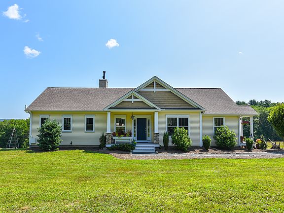 Custom designed modern arts and crafts home featuring three bedrooms and three full baths. Open floor plan with french doors to a large deck. Columns separate a formal coffered ceiling dining room, breakfast area and kitchen which has quartz counters, breakfast bar, gas range and three ovens. Hardwood floors throughout the first floor along with recessed lighting and unique fixtures. A three seasoned sunroom offers a beautiful view. The first floor master features a walk-in closet and en suite bath with custom shower and soaking tub. Private lower level with a great room, two additional bedrooms and full bath. The home has minimal exterior maintenance and low overall operating costs due to energy efficiency features. Professionally landscaped by the owner one will find an orchard of fruit varieties organically maintained. Skiing, water sports and fishing are all close by. Bradley Airport is a half hour away with New York City and Boston just over two hours.