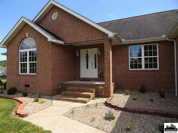 One owner, brick rancher on over an half acre! Spacious rooms, cathedral and tray ceilings, hardwood flooring, crown molding and six panel wood doors define this wonderful home. Great floor plan beginning with a large entry way with the study on the right with and the dining room on the left large enough to accommodate even the largest of family gatherings. Inviting gathering room with 12' cathedral ceiling and gas log fireplace open to the light filled all seasons room. Inviting kitchen with lots of cabinetry and counter space, pantry, breakfast bar and nook. Private owner's suite on the opposite end of the home from the other bedrooms. Owner's bedroom includes double tray ceiling, recessed lighting and full bath with double vanity, over sized shower, jet tub, solid surface counters and walk-in closet. Two great sized bedrooms on the opposite end of the home as well as the second bath with tile flooring and solid surface counters. Nice covered porch off the all seasons room overlooking the fenced back yard. Matching brick storage building on the rear of the property for storing lawn mowers and accessories to help keep your garage clutter free. A one floor plan beauty with a level yard less than 15 minutes from Huntington!