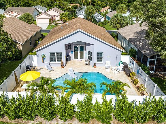 Paradise found in this inviting home! Well loved in the River Bridge Community w/resort style amenities w/a low monthly HOA. A major highlight of this home, is the custom salt pool oasis w/top notch pool equipment that include: a chiller/heater/ WIFI control & auto chlorinator. Travertine deck & privacy fence. Newly installed-impact windows, front entry & French doors. New kitchen w/quartz counter & backsplash, SS and shaker cabinets. Primary suite w/soak tub, separate shower & walk in closet. New 2nd bath w/frameless door w/designer elements. Gorgeous plantation shutters, base board & crown molding. Lushly landscaped. Ready for you to move right in! Backs to open green space. THE SELLERS ARE MOTIVATED AND READY TO ENTERTAIN ALL OFFERS! ______________________________________
