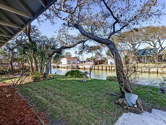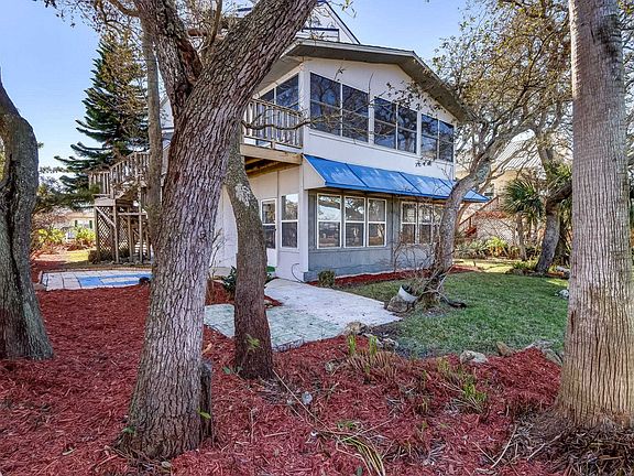 This solid concrete block home is ready for your personal touch, with a new roof in 2021 and one A/C replaced in 2022 it's ready for some updating. Over 2,900 square feet and already outfitted with 2 full kitchens, this home would be ideal for a multi-generation or income property. Situated along the canal in Treasure Beach just a short walk from the deeded beach access and a short boat ride from the ICW it's the perfect getaway or full-time home. When you enter the main level on the 2nd floor you are greeted by soaring ceilings and a dramatic brick 2 story fireplace. The main living space opens out to a generous enclosed porch with windows looking over the canal. Down the hall, 2 bedrooms share a bath. Upstairs the entire 3rd floor makes up the main bedroom suite. Downstairs an open kitchen/living and dining room with an original Coquina stone fireplace and 2 rooms that could easily be converted into bedrooms along with a full bath and separate entrance. The possibilities are endless. Garage doors replaced 2020, Septic pumped 2021, bulkhead reinforced 2023 and Canal dredging assessment has been paid in full by seller a savings of $660/yr.