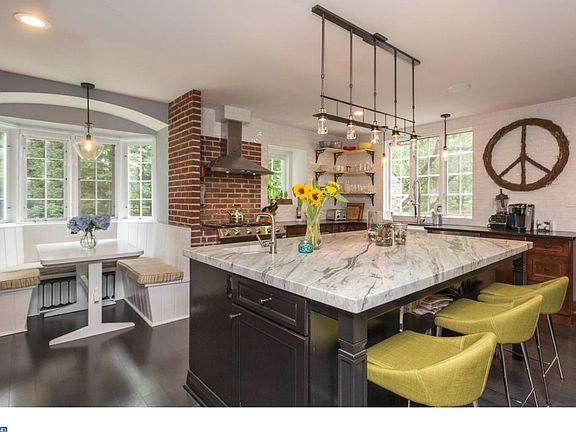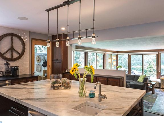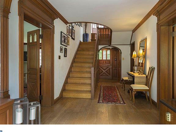 Tree-lined entry with circular driveway introduces this stately stone residence on 1.44 scenic acres. Superb quality, timeless design, finely crafted moldings & elaborate millwork. First floor includes classic, gracious center Hall with front-to-back entryways, newly renovated Kitchen with banquette and oversized marble island, open to Family room, both with radiant heated floors. Newly added Mudroom for entry from 5 car Garage. LR w/FP and French doors to beautiful stone side Porch, large DR with corner cabinet, Butler's pantry w/built-in cabinetry and Powder Room. Second floor has MBR suite w/FP, renovated full Bath, Dressing room and well appointed Office w/built-in cabinetry, wonderful light and views of the grounds; 3 additional Bedrooms, plus Laundry room and a full Bath. Third floor has 2 large Bedrooms with extensive built-ins & renovated full Bath. Rear flagstone Terrace & in-ground heated Pool offer a delightful backdrop for Al Fresco dining & outdoor activities. Minutes from train, 'downtown' Media's town center, Swarthmore College, shopping and the Blue Ribbon Wallingford-Swarthmore schools. You can't ask for more than this gem of an estate will provide Day One.