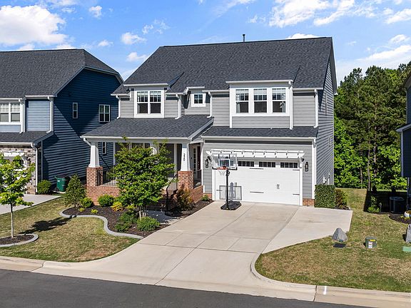 Beautiful house in the prestige The Legacy at Jordan Lake subdivision. Experience the perfect blend of comfort, luxury, and convenience. Daylight finished walk-out basement. 1st floor study with built in desk and shelves, large family room with gas fireplace, gourmet kitchen with large island, hardwood all downstairs rooms, mudroom off the garage, owners bedroom with tray ceiling, two car garage, screen porch overlooks private backyard. The covered front porch overlooks a large green space in a cul-de-sac, Embrace a vibrant, gated community that encourages a fulfilling social life and outdoors, and enjoy amenities including a clubhouse, golf, pool, fitness center, and trails.
