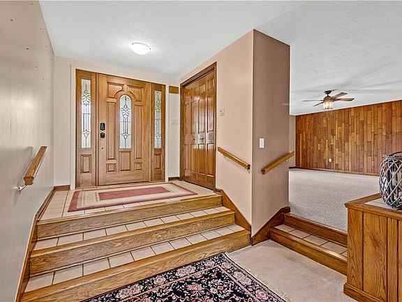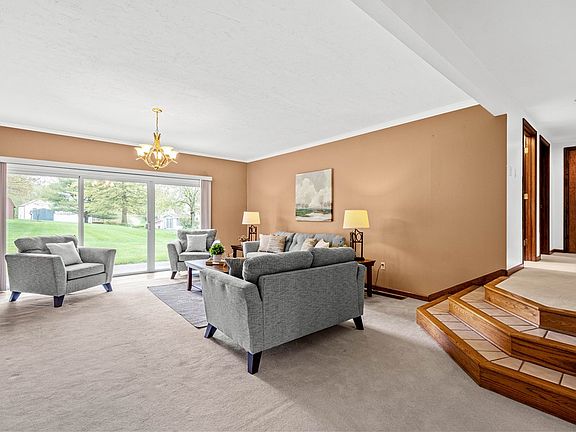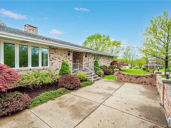 Your own private haven, this gorgeous ranch evokes charm and classic, cool livability. Situated on a sprawling lot, at the end of a quiet street, the brick exterior is inviting with a 2 car garage and a scalloped wall that beautifully encapsulates the entrance. After stepping through your leaded oak front door, you're greeted by a stylish sunken living room featuring original stonework detailing and a trio of light-abundant sliding glass doors, while the adjacent dining room has a matching chandelier for a truly cohesive look. This effortlessly placed floorplan has a massive lower level, a vaulted ceiling kitchen with skylights, an additional 1st-floor family room with a cozy fireplace; and an oversized primary suite with a double recessed ceiling draped in deep crown molding. Although minutes from the action of Trinity Point, nothing can compare to your private outdoor oasis complete with a pool and serene pond and waterfall. 220 Verona is waiting for you to live your best life.