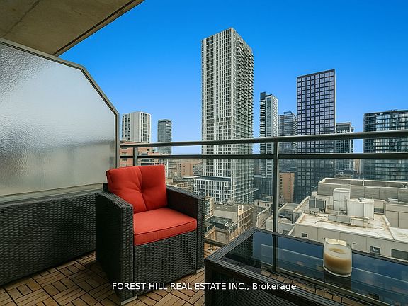 Rarely offered, this beautifully renovated and spacious 1-bedroom + convertible den, 2-bath suite offers 662 sq ft of stylish living in the boutique Opus-Pantages building. Enjoy unobstructed east-facing city and lake views from the 18th-floor, 107 sq ft terrace, along with owned parking and locker in a prime downtown location. Steps from hospitals, Bay Street, Ryerson, U of T, theatres, Eaton Centre, subway, and streetcar access. This bright unit features soaring 9 ceilings, floor-to-ceiling windows, and hardwood floors throughout. The gourmet granite kitchen is perfect for entertaining, with a sushi bar island, breakfast bar, double sink, new stainless steel Bosch appliances, and a luxurious Fisher & Paykel fridge. The spacious primary bedroom boasts custom closets and a spa-like 4-piece ensuite, with an additional full bath for added convenience. Upgrades include custom closets and a full-sized washer/dryer everything you need for comfortable and stylish urban living.