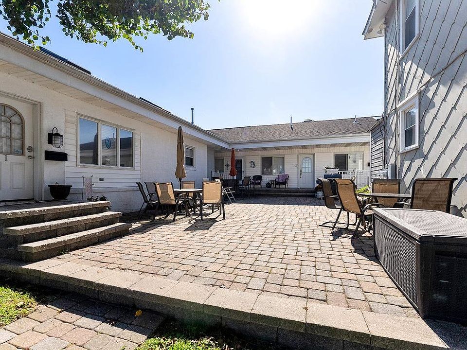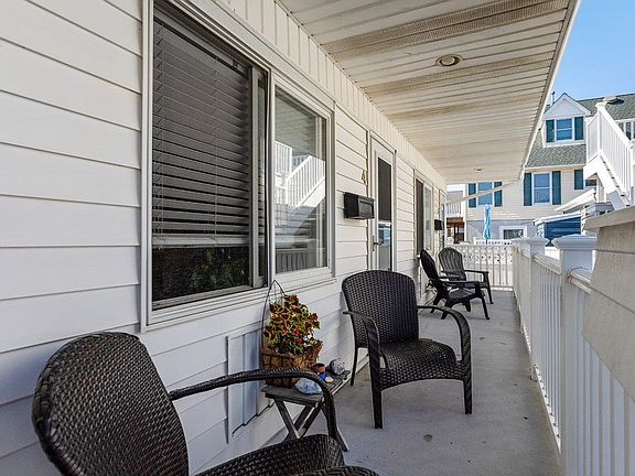 Adorable two-story condo nestled in a small 5 unit complex that sits back from the street providing peace & privacy you are looking for and conveniently located within walking distance to shopping and beautiful parks. The complex is pet friendly, offers a paver open & spacious patio area to lounge, barbecue, plus paver walkways to outside shower and additional storage for your beach chairs, etc.. The first floor of this unit offers lots of windows for positive natural light, a tiled great room and bedroom w/ hardwood floors. There is also a beautifully updated bathroom, kitchen with white cabinets, newer refrigerator, microwave oven, dishwasher, range top, disposal and built-in breakfast nook. The 1st floor bedroom has large closet, currently used as den w/ pullout couch and office space. There is even additional storage under the stairs. Wander up to the 2nd floor to another spacious bedroom w/ hardwood floors, closet and laundry closet with full-size washer & dryer. This level also has positive natural light from window & skylight. This condo is equipped with new high efficiency mini split heat & air conditioning as well as electric baseboard heat which insures comfort year-round usage. Low taxes and low condo fee include free Beach, trash removal, water, sewer, Property & Flood insurance and yearly fire inspection. New roof in 2023! - This property is wonderful and move-in ready!